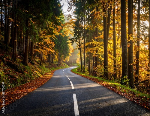 © FELOZ, Obraz premium Autumn road through forest