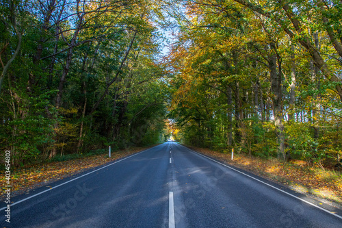 Fototapeta premium Autumn road through forest