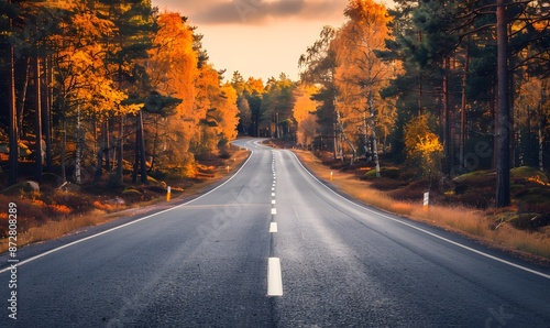 © MD, Fototapeta premium Autumn Road Through Scandinavian Forest