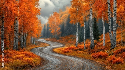 © FREDIFUN, Obraz premium Autumn Road Winding Through Aspen Forest