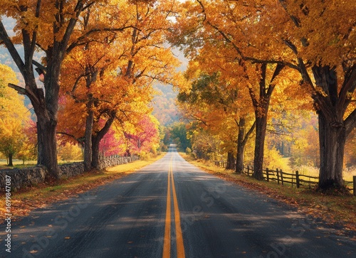 © Sabina Gahramanova, Fototapeta premium autumn road with colorful trees