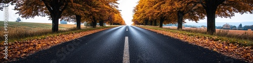 © MaxStock, Fototapeta premium Autumn Road with Orange Trees