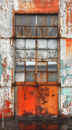 Naklejka premium Autumn's Embrace Serene View of Fall Foliage Through Forgotten Windows