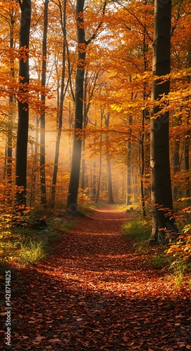 © Dao, Obraz premium Autumn's Golden Path AI Generated