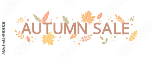 © Alrika , Fototapeta premium Autumn sale banner with text and autumn colorful leaves on white background, flat vector illustration