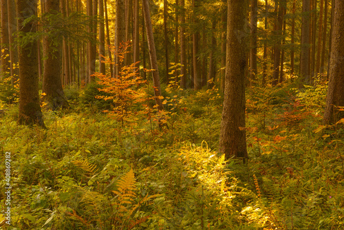 © Daniel M, Obraz premium Autumn scene in a wild forest from Carpathian Mountains.