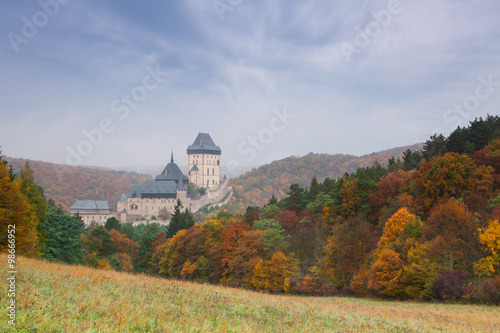 Fototapeta premium Autumn scenery with Karlstejn Castle