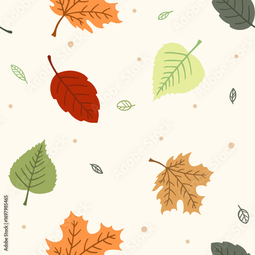 Obraz premium Autumn seamless pattern with fall leaves. Editable vector seamless background for wallpaper, packaging, poster, textile, banner, social media post, card, invitations.