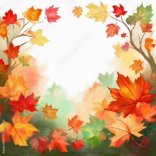 © MHC_Design, Fototapeta premium Autumn seasonal frame border with falling autumn colorful leaves background with space for copy