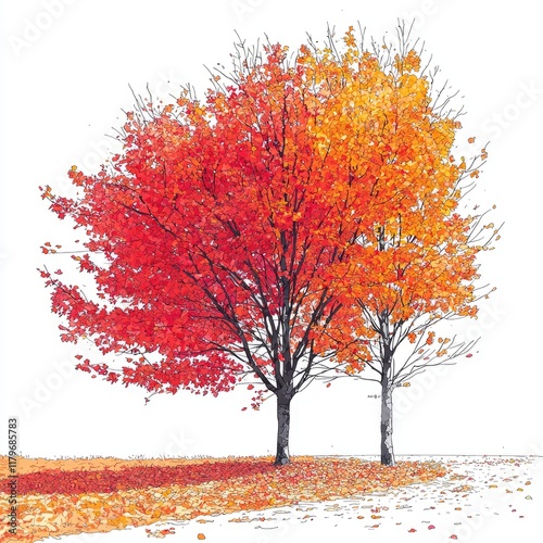 Fototapeta premium Autumn Splendor: A Pair of Maple Trees in Vibrant Fall Foliage, bathed in the...