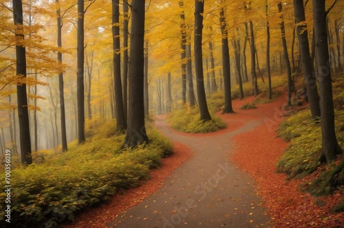 © Perfect-AI, Obraz premium Autumn splendor along a winding forest trail