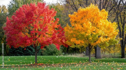 Naklejka premium Autumn Splendor: Colorful fall foliage on maple trees.