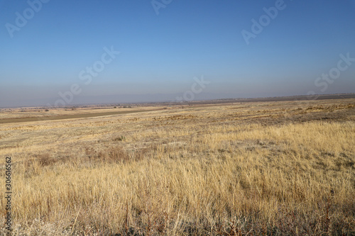 Obraz premium Autumn steppe in Kazakhstan. Yellow grass. Landscape.
