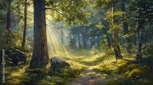 © Pixel _Art, Fototapeta premium Autumn Stream Flowing Through a Peaceful Forest Landscape