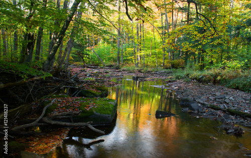 © SNEHIT PHOTO, Obraz premium Autumn stream in sun set