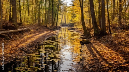 © Aliando, Obraz premium Autumn Stream Through a Forest