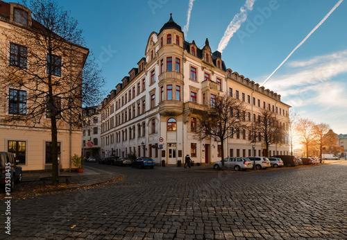 Fototapeta premium Autumn street architecture in old town of Dresden