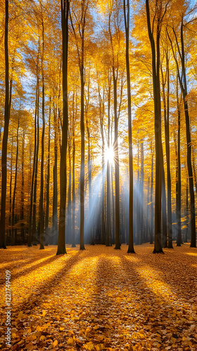 © share, Fototapeta premium Autumn sun rays forest path (3)