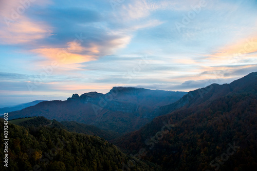 Obraz premium Autumn sunset in Puigsacalm peak, La Garrotxa, Spain