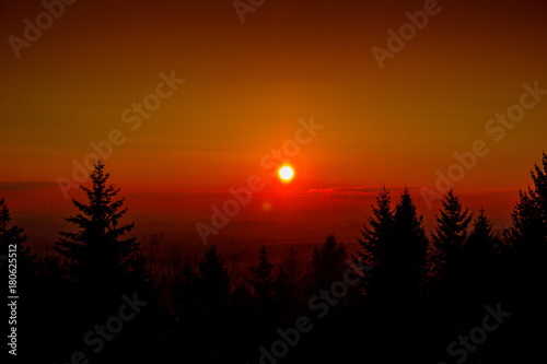 Fototapeta premium Autumn sunset over forest