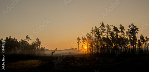 Fototapeta premium Autumn sunset with fog