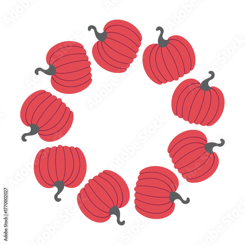 Fototapeta premium Autumn Thanksgiving Day Halloween wreaths boarder round frames of red pumpkins