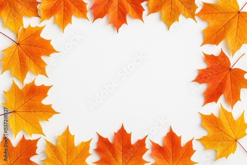 © AkuAku, Fototapeta premium Autumn-themed border featuring maple leaves with empty space on a white backdrop