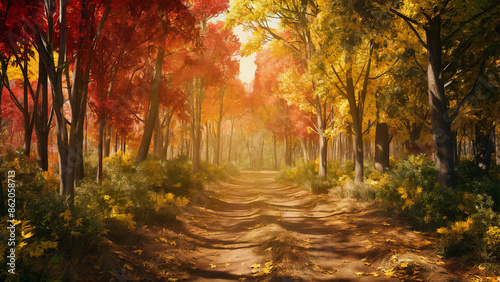 © Nayan, Naklejka premium Autumn Trail in the Woods