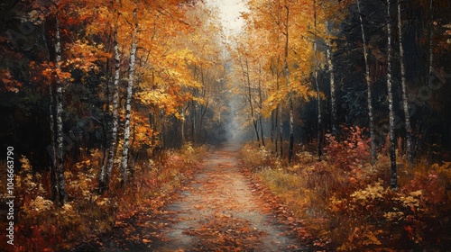 © Настя Шевчук, Obraz premium Autumn trail through woods