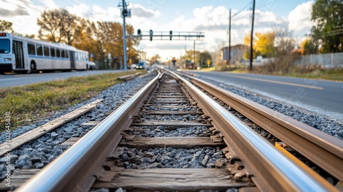 Fototapeta premium Autumn Train Tracks Suburban Intersection