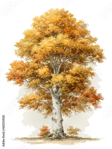 © Hardian, Fototapeta premium Autumn tree illustration, isolated, landscape background. Possible use poster
