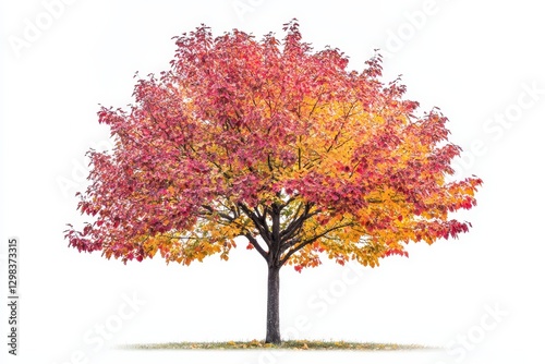Fototapeta premium Autumn Tree Isolated on White - Single deciduous tree in vibrant autumn colors, isolated on a pure white background. Perfect for fall themes