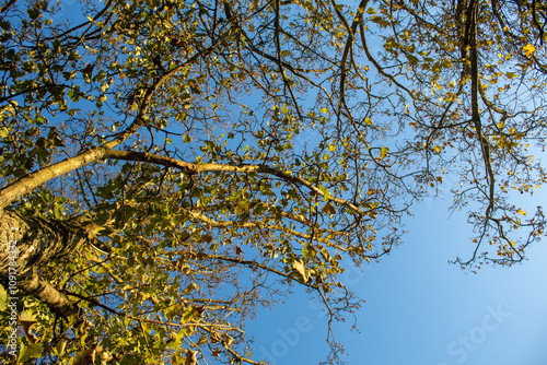 © Laura Pratt, Fototapeta premium autumn tree on the blue sky