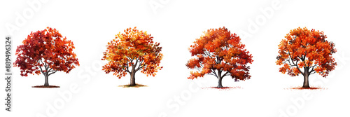 © yLemon, Naklejka premium Autumn tree set cutout. Set of autumn tree on transparent background