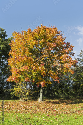 © joe888, Naklejka premium Autumn tree shedding leaves