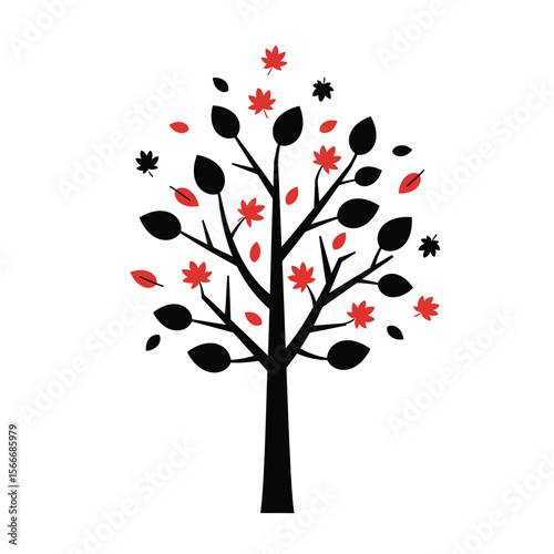 © Pvect02, Fototapeta premium Autumn Tree Silhouette with Falling Leaves