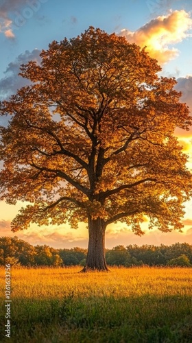 © Semi, Fototapeta premium Autumn Tree Sunset Landscape