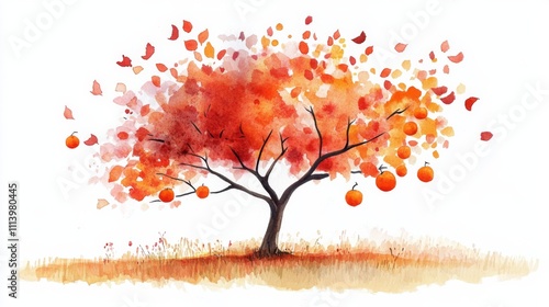 Fototapeta premium Autumn Tree with Falling Leaves and Fruits