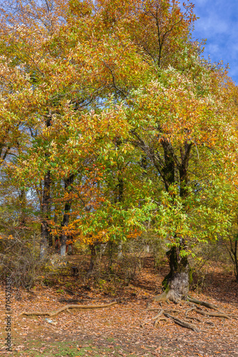 © alexmu, Naklejka premium Autumn tree with roots from underground
