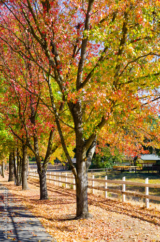© Jerrad, Naklejka premium Autumn trees along a ranch fence