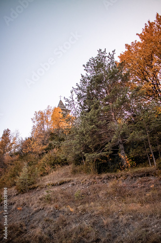 Obraz premium Autumn trees and church bell