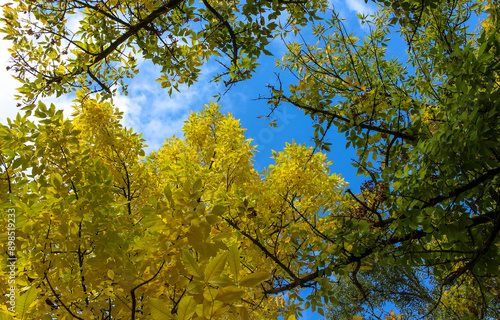 © Inna, Fototapeta premium Autumn trees on autumn sky background