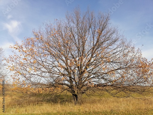 Obraz premium autumn trees with remnants of yellow leaves