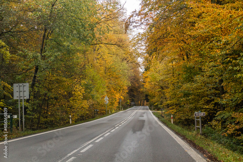 Fototapeta premium Autumn view of I11 road, Czech Republic