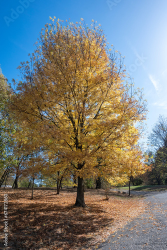 © Stoyan Haytov, Naklejka premium Autumn view of South Park in city of Sofia, Bulgaria