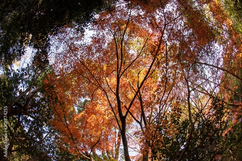 © Pablo, Fototapeta premium Autumn view with red leaves