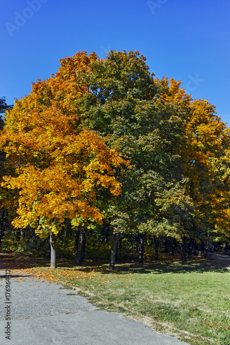 Naklejka premium Autumn view with Yellow trees in South Park in city of Sofia, Bulgaria