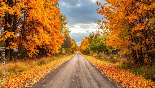 © nisriina, Fototapeta premium Autumn Village Road