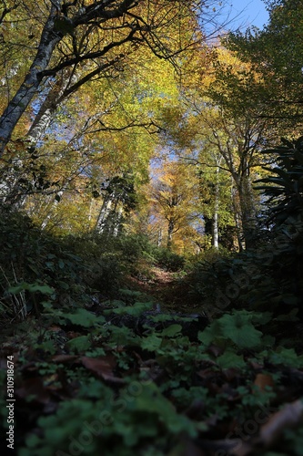 © murat, Fototapeta premium Autumn village trees landscape view. Autumn village scene.