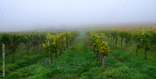 Fototapeta premium autumn vineyards in the mist